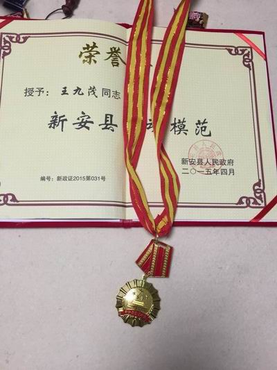 2015年04月29日晚,县委,县政府、县工会在新安县举行了五一劳动模范表彰大会,我公司总经理王九茂荣获县劳动模范称号。王总是我公司全体员工学习的楷模。